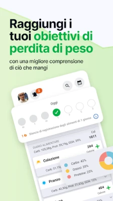 Il Contacalorie ti offre un ecosistema di strumenti per tracciare ogni aspetto del tuo percorso. Utilizza il Diario Alimentare per pianificare e annotare ciò che mangi, affiancato dal Diario dell'Attività fisica per monitorare le calorie bruciate. Il Calendario della Dieta ti offre una panoramica chiara del tuo bilancio energetico, mentre il Tieni-traccia del peso e il Diario dei progressi registrano i tuoi miglioramenti nel tempo. Grazie al riconoscimento delle immagini, puoi persino registrare i tuoi pasti scattando una foto. Approfitta di report dettagliati, notifiche personalizzate e un accesso semplificato tramite Facebook o Google per un'esperienza utente fluida, con la possibilità di sincronizzare il tuo account online per consultare le tue informazioni ovunque.