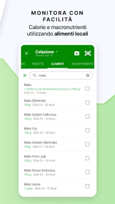 Raggiungere i tuoi obiettivi di benessere e fitness non è mai stato così accessibile. Il Contacalorie è la soluzione intuitiva e completa progettata per guidarti nel percorso verso una vita più sana, permettendoti di prendere il pieno controllo della tua alimentazione e dell'attività fisica. Trova istantaneamente informazioni nutrizionali per i tuoi cibi preferiti, marche e ristoranti con una ricerca rapida, o semplifica l'inserimento dei dati utilizzando l'efficiente scanner per codici a barre, anche manuale. Monitora i tuoi allenamenti senza sforzo grazie all'integrazione diretta con Google Fit, Samsung Health e Fitbit, assicurandoti che ogni passo e ogni caloria bruciata siano registrati accuratamente.
