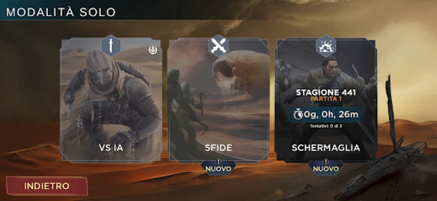 Metti alla prova la tua astuzia in un'ampia gamma di scenari: affronta avversari da ogni angolo del cosmo in emozionanti partite online, affina le tue tattiche scontrandoti con l'Intelligenza Artificiale, o confrontati direttamente con l'implacabile Casa Hagal. Conquista Prestigiosi Riconoscimenti che attestano la tua supremazia di leader e supera una dozzina di Sfide intricate, progettate per spingere al limite il tuo ingegno. Per un'esperienza sempre nuova e imprevedibile, immergiti nelle Schermaglie: una modalità di gioco a rotazione dove ogni partita presenta un campo di battaglia unico per la conquista di badge, garantendo che due scontri non siano mai uguali. Prendi il controllo della Spezia. Prendi il controllo dell'Universo.