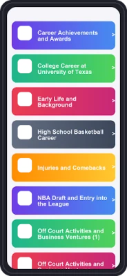 Metti alla prova la tua conoscenza su Kevin Durant con "Kevin Durant Trivia Quiz"! Impara fatti nuovi, gioca a quiz avvincenti e pratica le tue abilità per diventare un vero esperto di KD. Scopri il mondo del basket attraverso divertenti sfide.