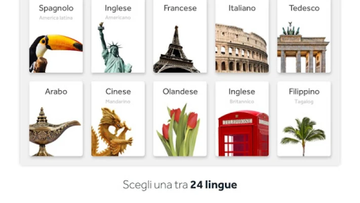 Esplora un mondo di lingue con un unico abbonamento. Accedi a tutte le nostre lingue e passa liberamente da una all'altra, soddisfacendo ogni tua curiosità linguistica. La tua libertà di apprendere, senza limiti.