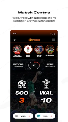 Immergiti completamente nell'universo del rugby con l'applicazione definitiva per gli appassionati! L'app ufficiale del Guinness Sei Nazioni ti porta il cuore dell'azione direttamente sul tuo dispositivo, garantendo che non ti perda nemmeno un momento di questo leggendario torneo. Preparati a vivere ogni placcaggio, ogni meta e ogni trionfo come mai prima d'ora, con un accesso privilegiato a contenuti esclusivi pensati per il vero intenditore di rugby e per chi desidera un'esperienza senza pari nel mondo della palla ovale.