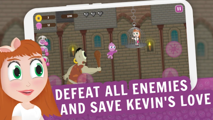 Aiuta Kevin, una creatura viola, a salvare il suo amore rapito da un ciclope gigante. Attraversa luoghi difficili e sconfiggi nemici per raggiungere il Castello del Ciclope e completare la missione del nostro eroe.